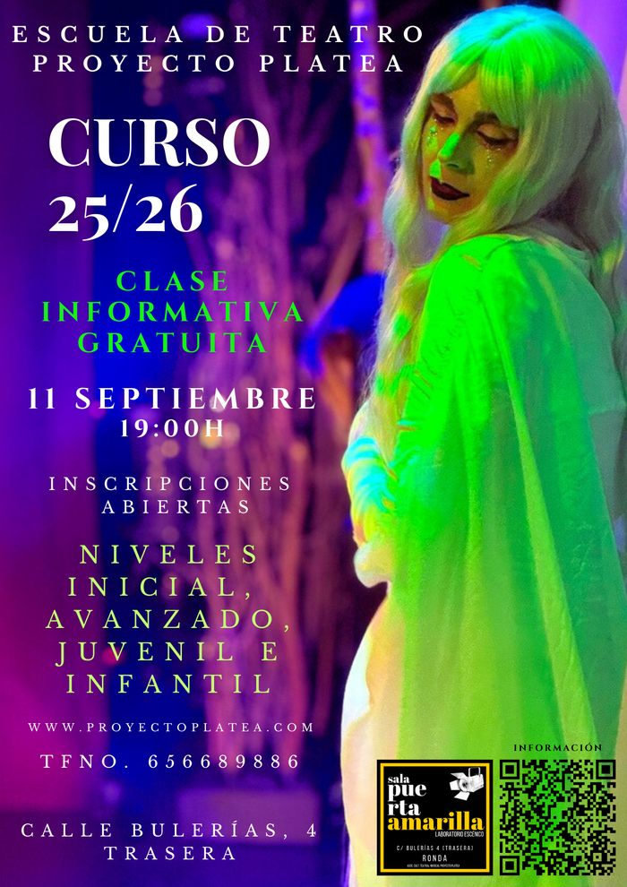 Esta interesante plataforma nace en 2017, de la mano del actor y director rondeño Marcos Marcell, como respuesta a la innegable necesidad de crear un punto de encuentro común para las Artes Escénicas en la Serranía de Ronda y la organización de acciones formativas de calidad profesional en torno al teatro, y se coloca a la vanguardia de la enseñanza teatral en nuestra ciudad y comarca.